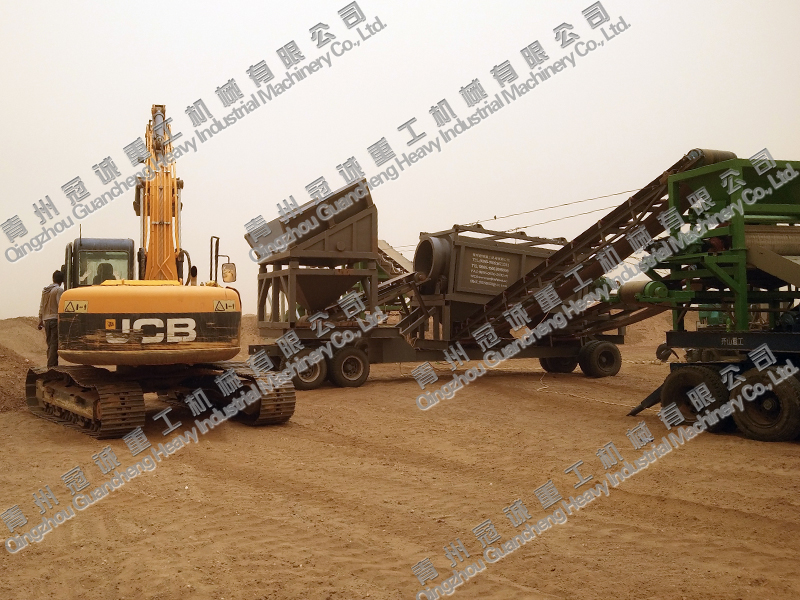 底盤框架主要由30#工字鋼組成,含12條900#輪胎。振動料倉篩條使用工鋼縱向間隔8CM布置,料倉使用5mm厚鋼板焊接。滾筒篩凈篩孔長度3米,內(nèi)直徑1.2米,外直徑1.5米,含污泥絞洗裝置,主框架使用15#方管焊接,料倉使用5mm鋼板焊接。