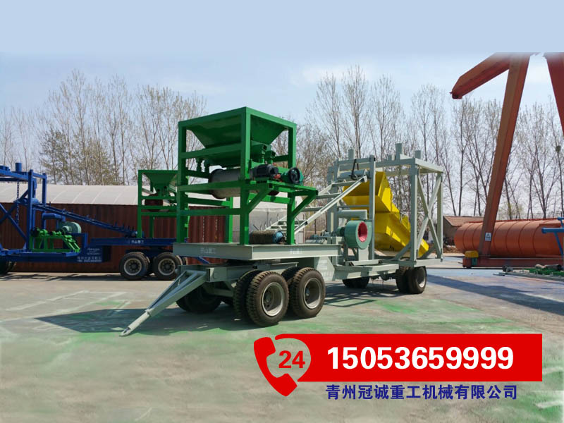 底盤框架主要由30#工字鋼組成,含12條900#輪胎。振動料倉篩條使用工鋼縱向間隔8CM布置,料倉使用5mm厚鋼板焊接。滾筒篩凈篩孔長度3米,內(nèi)直徑1.2米,外直徑1.5米,含污泥絞洗裝置,主框架使用15#方管焊接,料倉使用5mm鋼板焊接。
